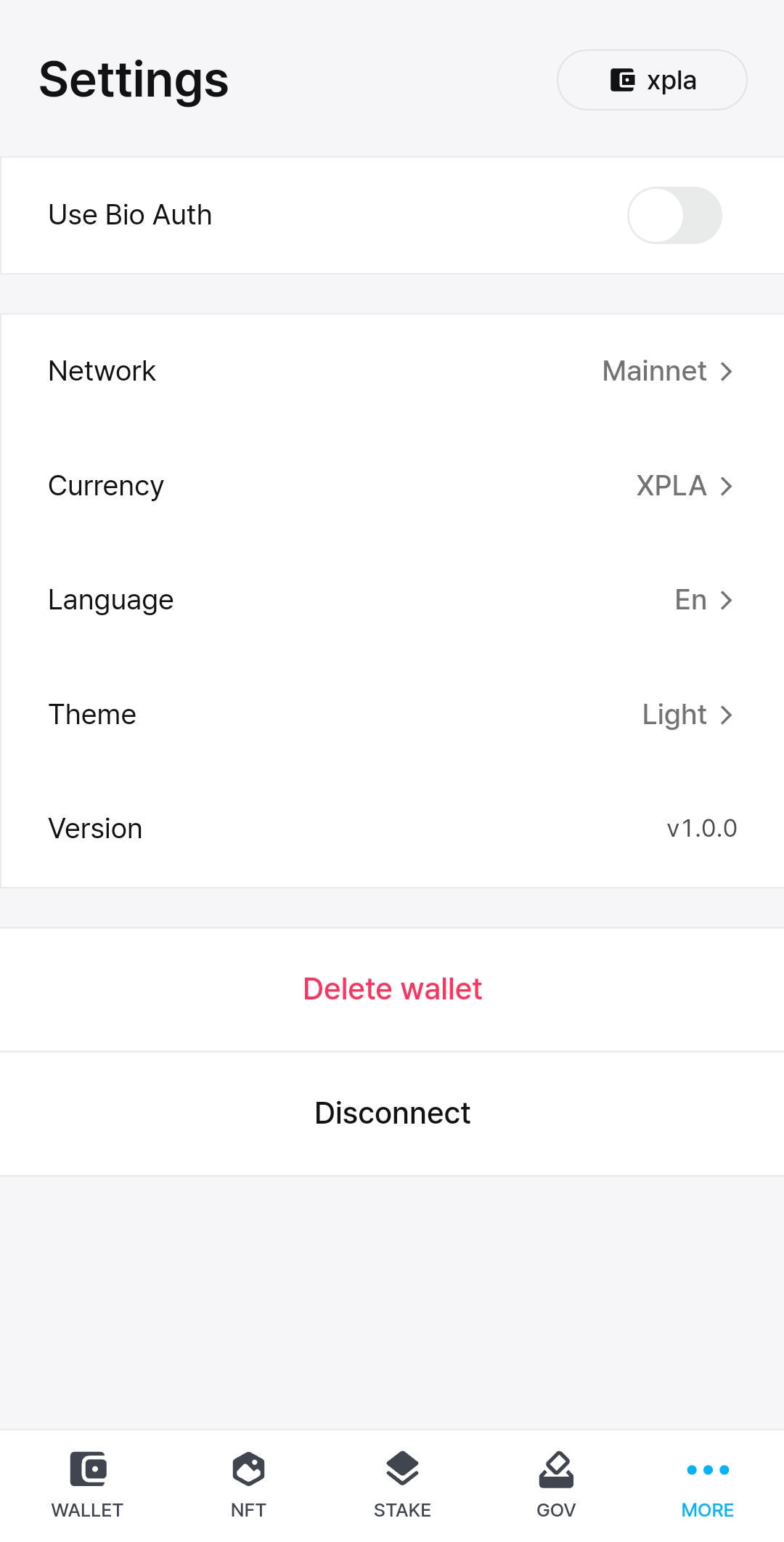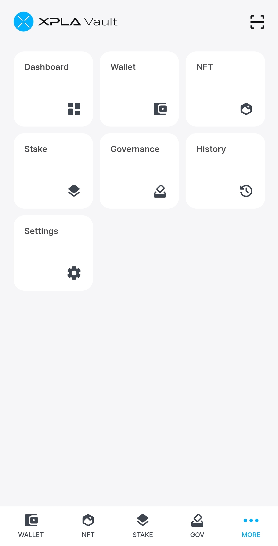 Click the “MORE” icon in the bottom right of the XPLA Vault menu.