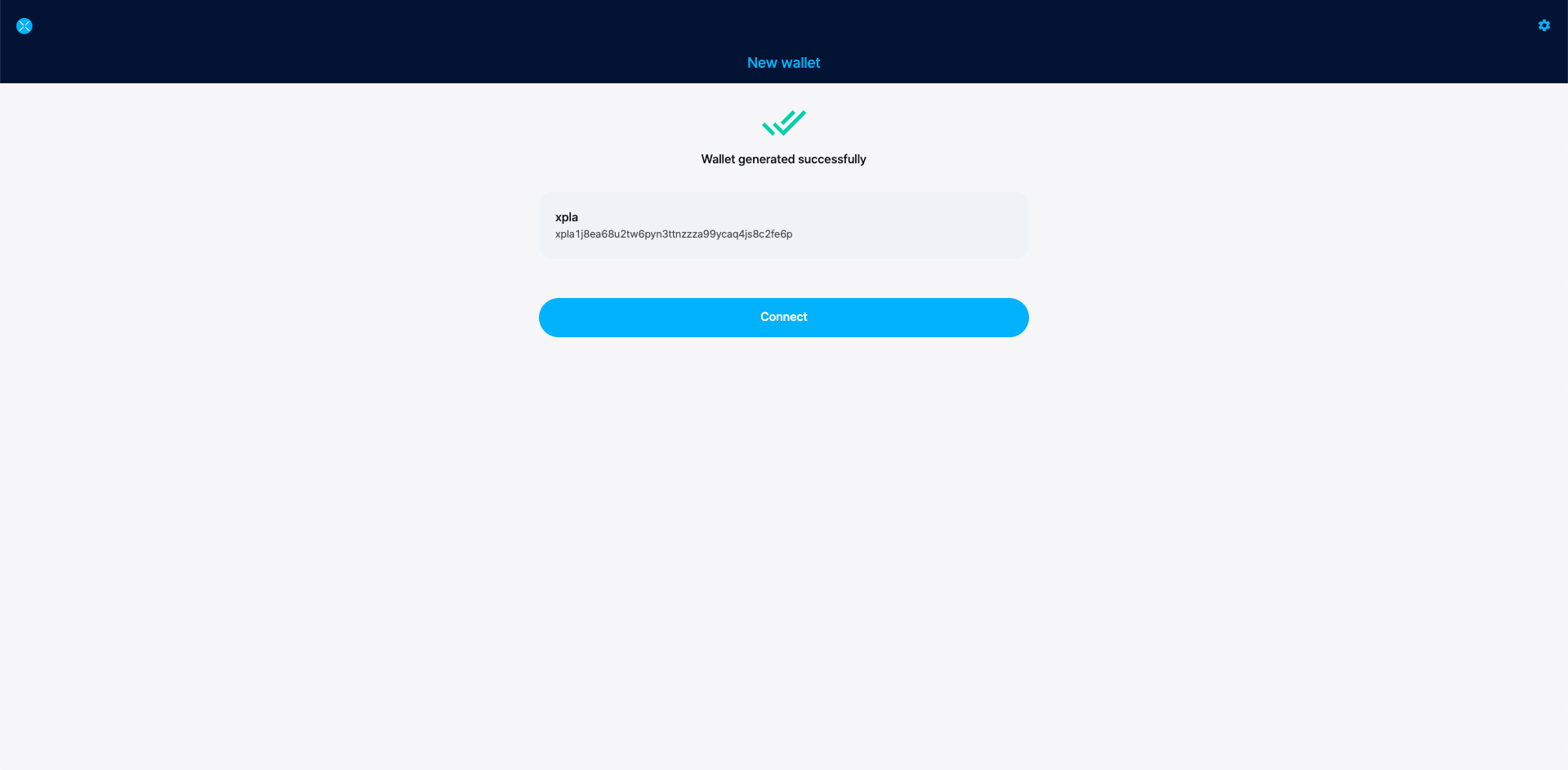 Click Connect to connect to your new wallet.